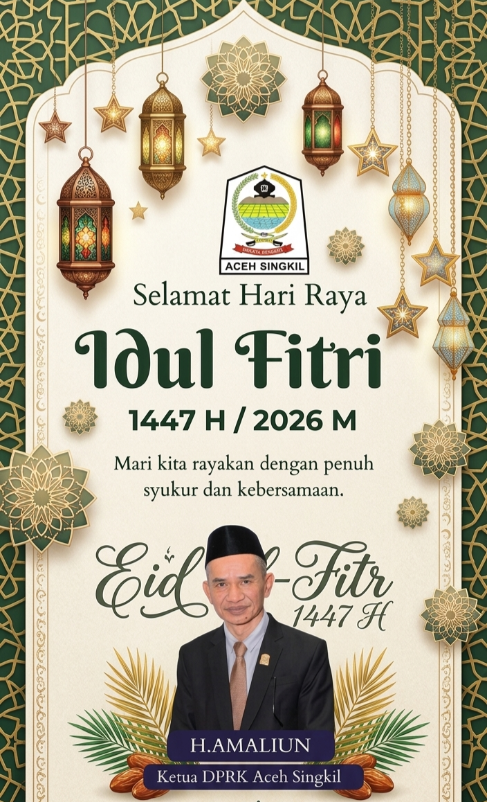 SINGKIL – Ketua Dewan Perwakilan Rakyat Kabupaten (DPRK) Aceh Singkil, H. Amaliun, menyampaikan ucapan selamat Hari Raya Idulfitri 1447 Hijriah kepada masyarakat Aceh Singkil.